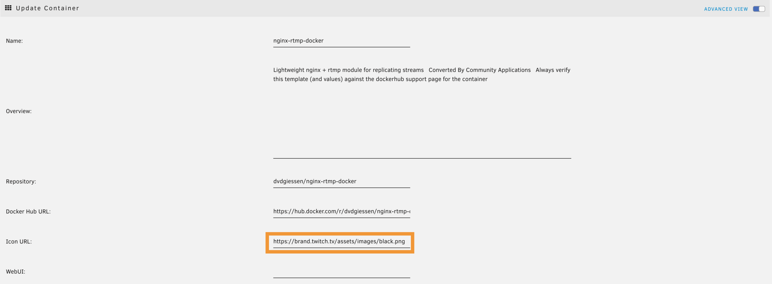 Configure NGINX RTMP Docker in Unraid